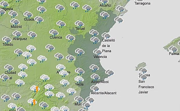 Llegan las primeras lluvias. Aemet prevé intervalos nubosos el sábado, tendiendo a cielo nuboso por la tarde. Las precipitaciones serán probables al final del día, aunque en principio de carácter débil, en cualquier punto de la Comunitat. También será probable la presencia de polvo en suspensión. Temperaturas mínimas con pocos cambios y máximas en descenso. El viento soplará del nordeste en el litoral de Alicate; en el resto, viento flojo variable, con predominio de la componente este por la tarde y aumentando a noroeste moderado en el norte de Castellón y a nordeste moderado en el litoral central.